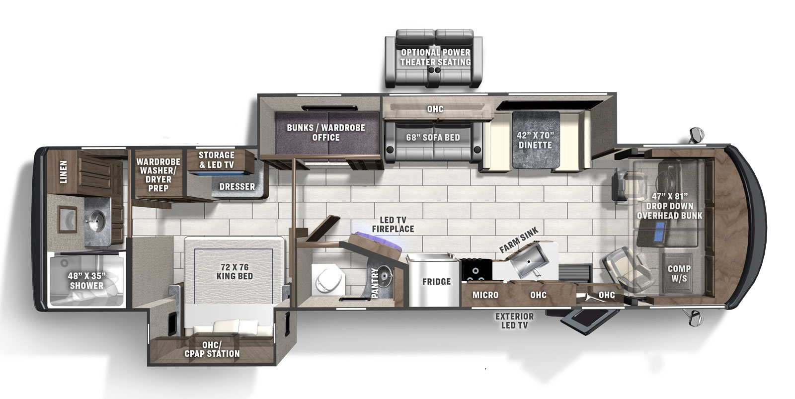 De Motorhome Travel MHADL camper is een ruime camper voor 4 volwassenen en 3 kinderen. Alles voor een comfortabele camperreis is aanwezig. Daarnaast heeft de camper 2 tot 3 slide-outs wat extra ruimte geeft.